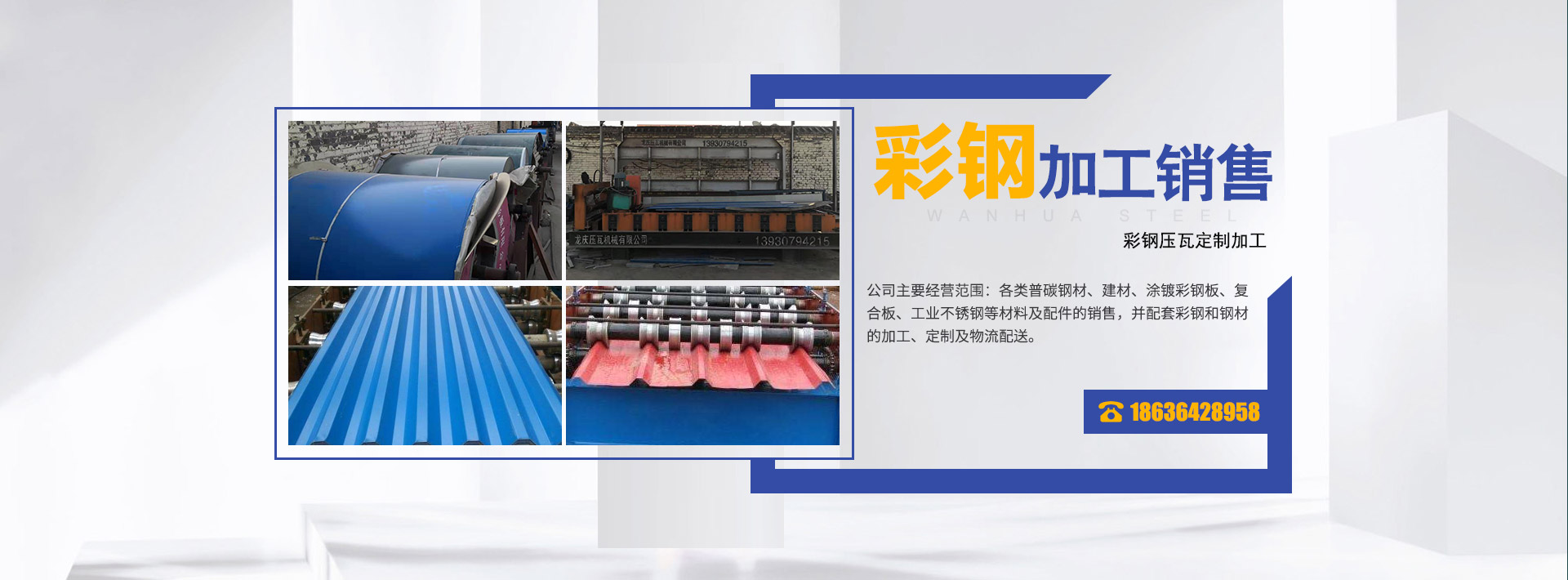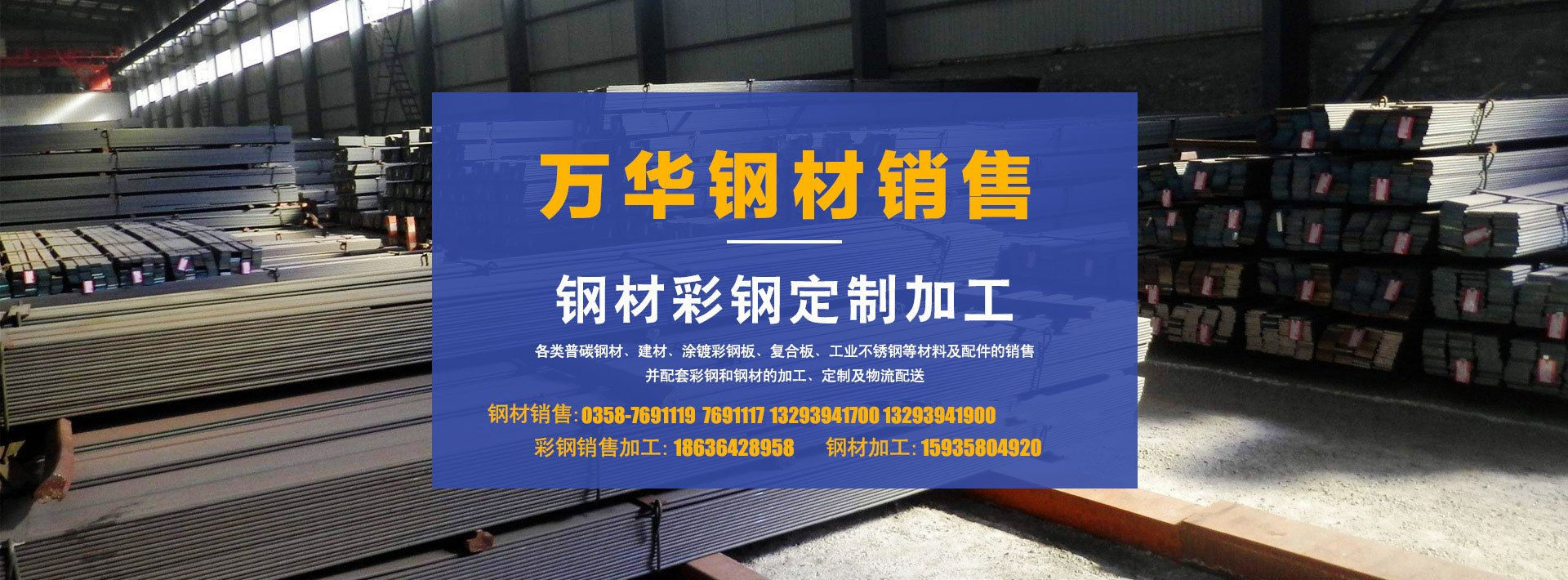 孝義市萬(wàn)華鋼材銷(xiāo)售有限公司(含彩鋼、鋼材加工)成立于2014年12月(前身為萬(wàn)華鋼材經(jīng)銷(xiāo)門(mén)市部),是一家集鋼材、彩鋼的銷(xiāo)售、加工、定制、物流配送為一體的專(zhuān)業(yè)化企業(yè),注冊(cè)資金5...